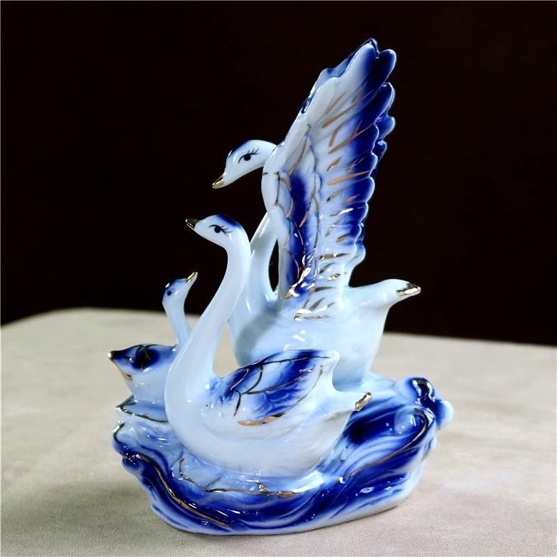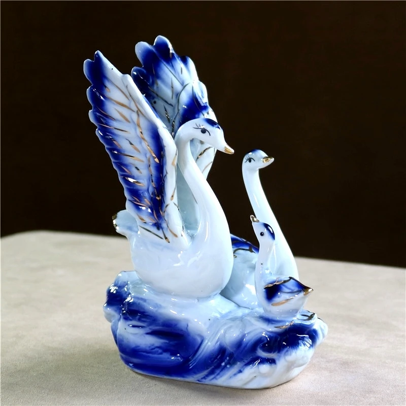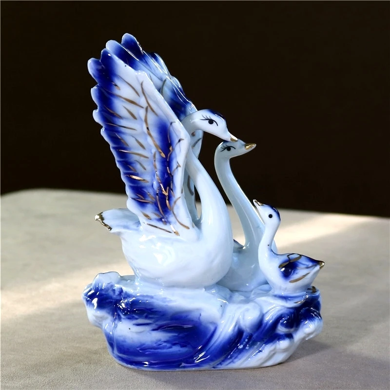 Porcelain Swan Figurine Gilded Ceramics Swan Family Statue Decor Handicraft Ornament Wedding Annive