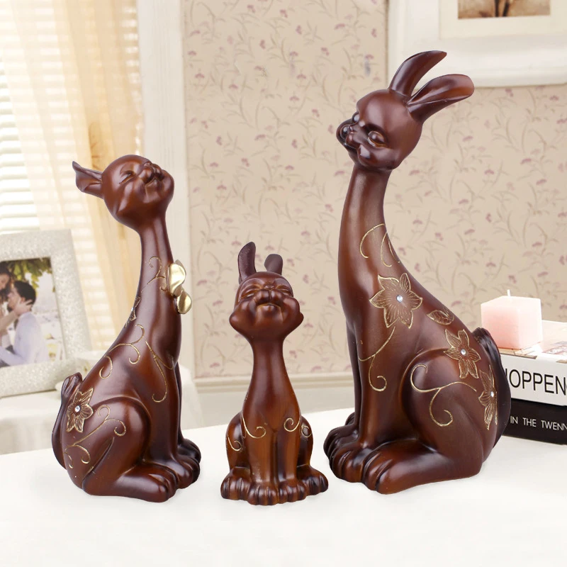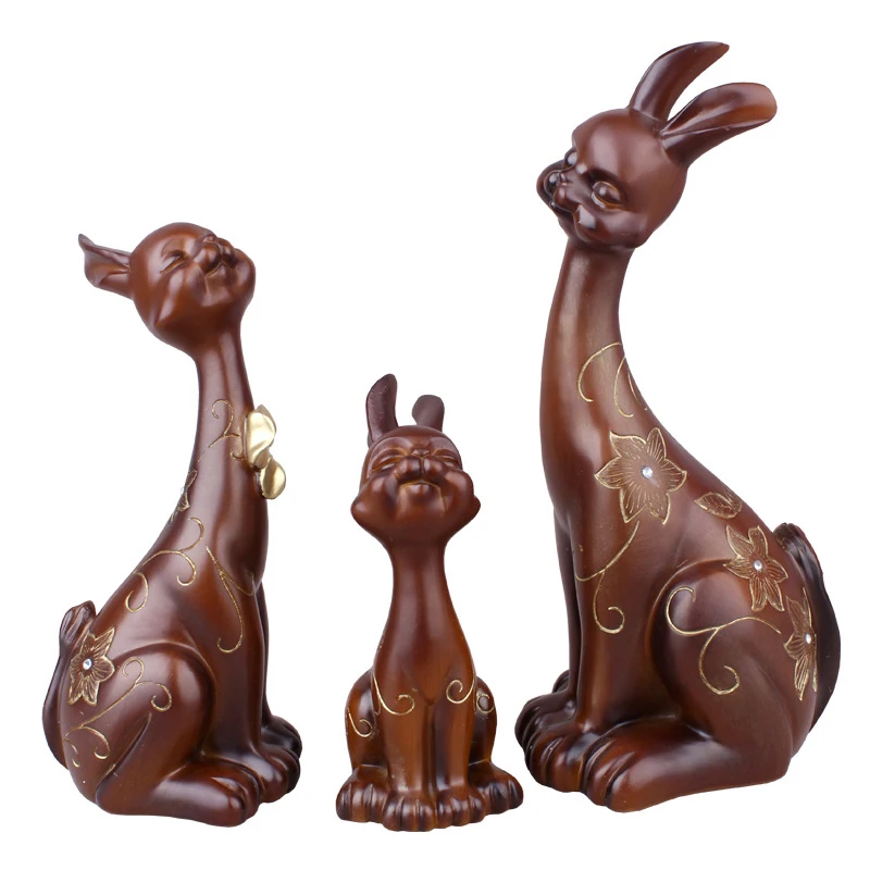 ORIGINAL 3pcs Rabbit Statue Crafts Fairy Resin Family Animal Rabbit Miniature Home Decoration DIY House Deco