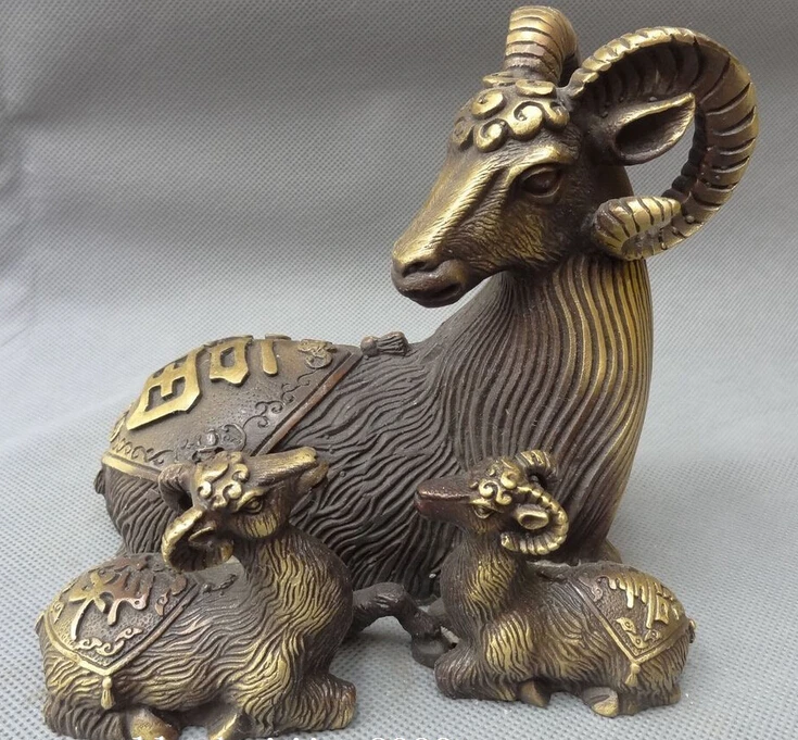 ORIGINAL JP S0608 Chinese Bronze Year Zodiac FengShui Fu Lu Shou 3 Sheep Goat Family Statue Animal