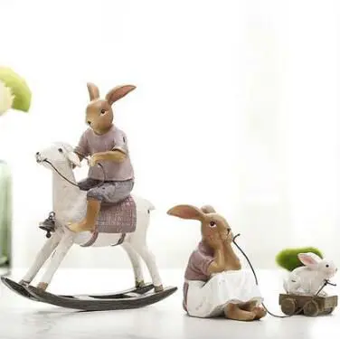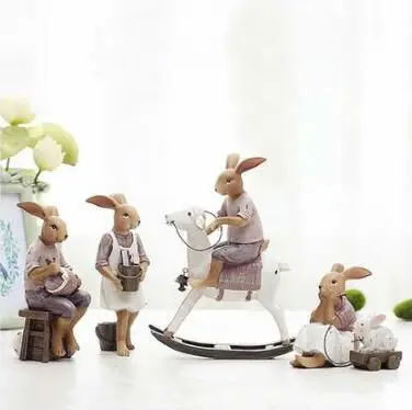 creative resin cute rabbits family figurines vintage statue home decor crafts room decoration objec