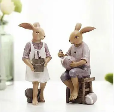 ORIGINAL creative resin cute rabbits family figurines vintage statue home decor crafts room decoration objec