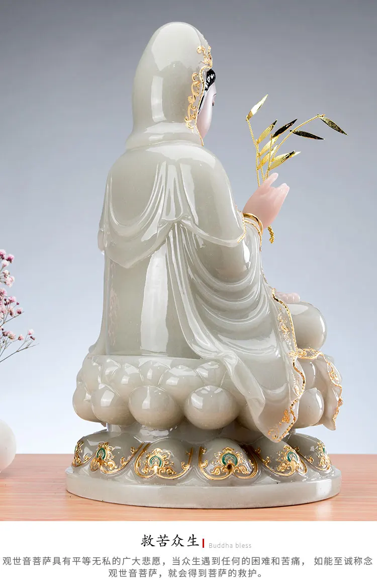 30CM large- 2020 Good quality jade COLOR gilding Guanyin Buddha Home family efficacious bless safe